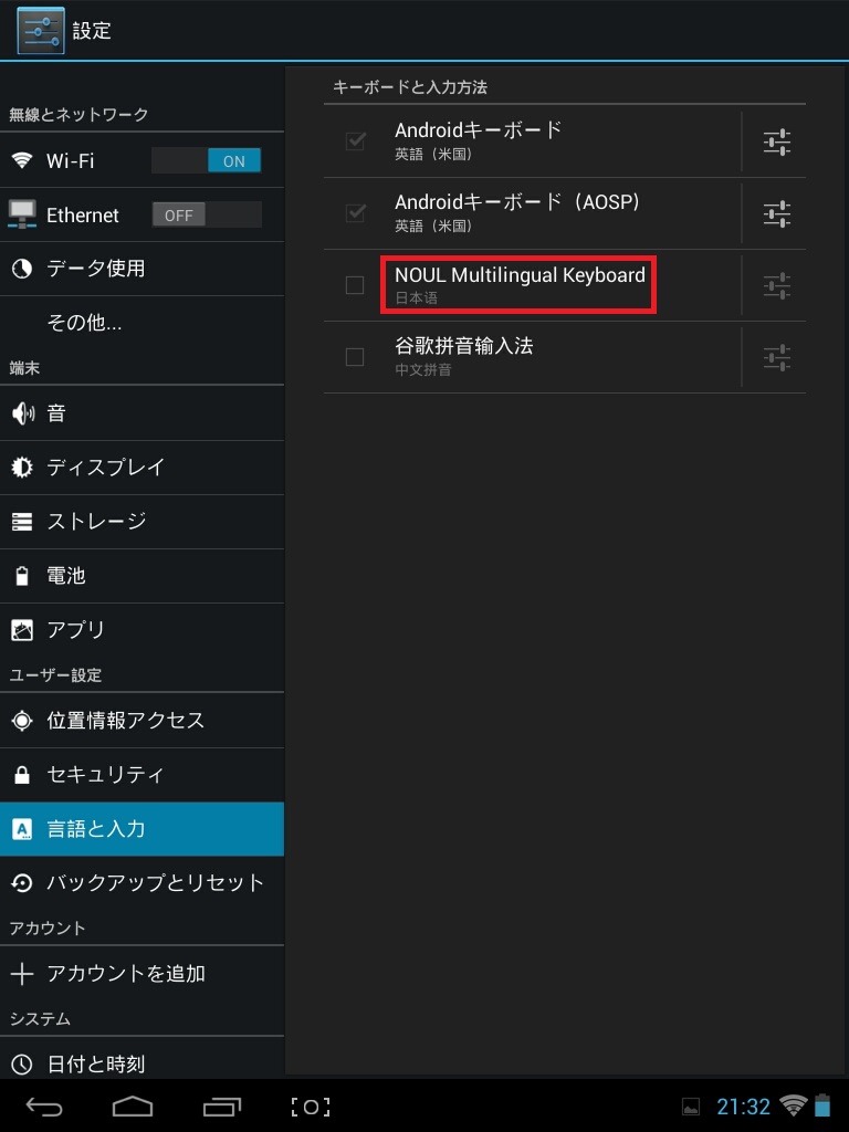 (Androidには日本語が無いので)